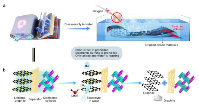近日,清華大學(xué)深圳國際研究生院材料研究院康飛宇教授和李寶華教授團(tuán)隊合作研究開發(fā)出了一套高效綠色回收退役鋰離子電池的有效策略。基于帶電退役電池在水中的精準(zhǔn)拆解,結(jié)合濕法冶金工藝,完成對廢舊電池中鋰、鐵、磷等單個元素的高效提取。該研究為解決退役鋰離子電池的高效綠色回收和高值化利用問題提供了新思路,有助于推動退役鋰電池回收的工業(yè)化進(jìn)程。