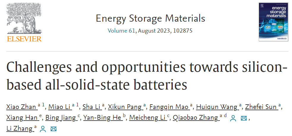 本文詳細介紹了Si陽極在循環過程中的電化學-機械行為,包括Si陽極的鋰化機理、體積膨脹、動態固體-電解質-界面(SEI)重構以及應力在Si基ASSBs中的演化和影響。作者還全面總結了全固態電解質(如LiPON、硫化物、石榴石和聚合物)的發展以及硅基ASSBs中硅陽極的結構設計(如納米結構和復合結構)。此外,作者詳細闡述了硅基自組裝電池高壓陰極的挑戰和對策,以進一步構建和應用全電池。作者詳細介紹了硅基ASSBs從基礎到應用的重大研究進展。作者希望這篇綜述將為下一代硅基ASSBs的開發提供有價值的失效機制和先進的優化策略,并彌合基礎研究和實際應用之間的差距。該研究以題目為“Challenges and opportunities towards silicon-based all-solid-state batteries”的論文發表在材料領域國際頂級期刊《Energy Storage Materials》。