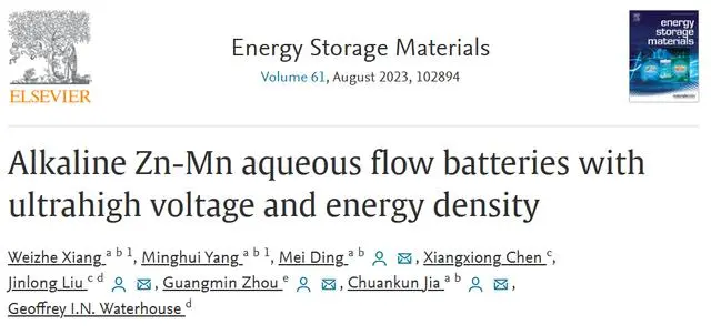 日前,長沙理工大學(xué)儲能研究所教授賈傳坤、丁美聯(lián)合中南大學(xué)副教授劉金龍、清華大學(xué)深圳國際研究生院副教授周光敏創(chuàng)新性研發(fā)了首款低成本高能量密度鋅-高錳液流