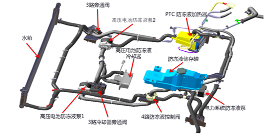 電池管理系統內的冷卻管道曲折布置在電池間,冷卻液(50%水與50%乙二醇混合物)在管道內部流動,帶走電池產生的熱量。特斯拉Model S用一個四通轉換閥實現了冷卻系統的串并聯切換。主要是為了根據工況選擇最優熱管理方式。當電池在低溫狀態下需要加熱時,電池能量管理系統檢測并發出指令,使得電機冷卻回路與電池冷卻回路串聯,從而使電機為電池加熱。當動力電池處于高溫時,電池能量管理系統同樣檢測并發出指令,使得電機冷卻回路與電池冷卻回路并聯,兩套冷卻系統獨立散熱。