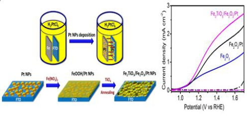 Fe2TiO5/Fe2O3/Pt光陽極合成示意圖及光電催化分解水性能