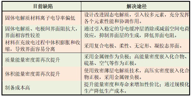 表2 全固態鋰電池目前存在的缺陷和解決方案