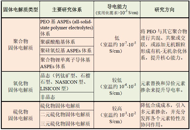 固體電解質是全固態鋰二次電池的核心部件,其進展直接影響全固態鋰二次電池產業化的進程。目前固體電解質的研究主要集中在3大類材料:聚合物、氧化物和硫化物。