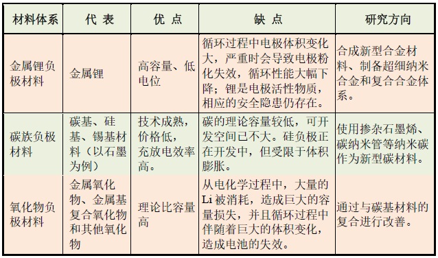 全固態鋰二次電池的負極材料目前主要集中在金屬鋰負極材料、碳族負極材料和氧化物負極材料3大類,三大材料各有優缺點,其中金屬鋰負極材料因其高容量和低電位的優點成為全固態鋰電池最主要的負極材料之一。