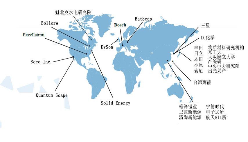 圖6 世界范圍內部分全固態鋰二次電池研究機構及企業分布圖(圖中僅羅列全球部分全固態鋰電池研究機構及企業,如有遺漏,歡迎補充)