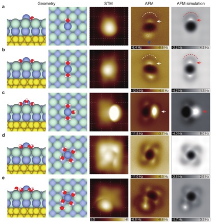 對(duì)此難題,研究人員發(fā)展了基于一氧化碳針尖修飾的非侵?jǐn)_式原子力顯微鏡成像技術(shù),可以依靠極其微弱的高階靜電力來(lái)掃描成像。他們將此技術(shù)應(yīng)用到離子水合物體系,首次獲得了原子級(jí)分辨成像,并成功確定了其原子吸附構(gòu)型。