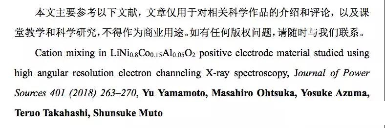 Yu Yamamoto的研究表明NCA材料在完全有序層狀結構和完全無序巖鹽結構之間還存在一個過渡層——部分有序結構,也就是Li/Ni發生部分混排,而通過模型的擬合也發現,部分有序結構是一個獨立的層的形式存在的,而不是均勻的分布在整個顆粒內部,這也表明NCA材料的衰變是從顆粒的表面開始發生,逐漸相顆粒的內部進行過渡的。Yu Yamamoto的工作也實現了對NCA材料中層狀結構、巖鹽結構和部分有序結構的定量分析,對于指導NCA材料的優化具有重要的指導意義。