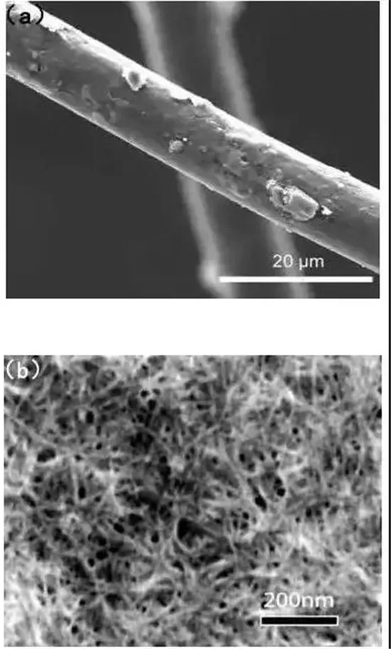 (a)PBO原纖維;(b)PBO納米纖維隔膜結構