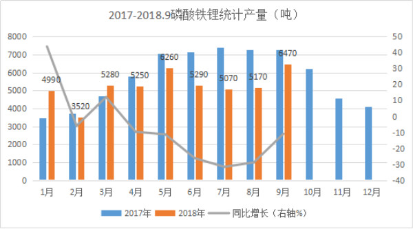 1—9月份磷酸鐵鋰統計產量4.73萬噸,同比下滑12.2%,9月份以來月產量出現明顯回升;