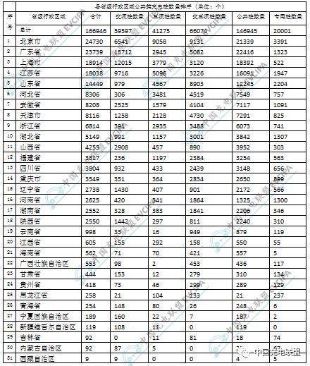 省級行政區域充電樁數量排名及明細(不含港、澳、臺)