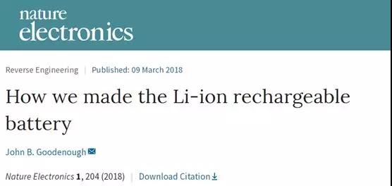 [1] Goodenough J B.How we made the Li-ion rechargeable battery[J]. Nature Electronics,2018,1(3):204.