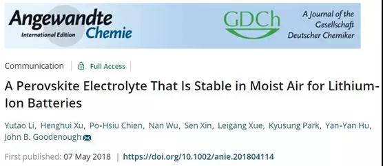 [5] Li Y, Xu H,Chien P, et al. A Perovskite Electrolyte That Is Stable in Moist Air forLithium-Ion Batteries[J]. Angewandte Chemie International Edition,2018,57(28):8587-8591.