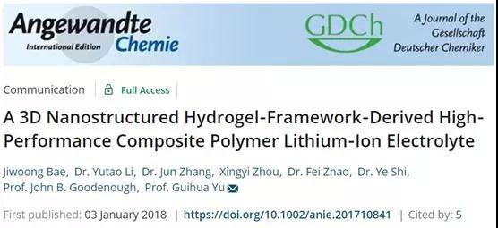 [3] Bae J, Li Y,Zhang J, et al. A 3D Nanostructured Hydrogel-Framework-Derived High-PerformanceComposite Polymer Lithium-Ion Electrolyte[J]. Angewandte Chemie InternationalEdition, 2018,57(8):2096-2100.