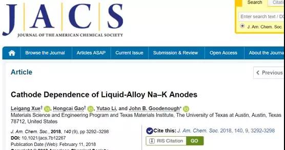 [8] Xue L, Gao H,Li Y, et al. Cathode Dependence of Liquid-Alloy Na–K Anodes[J]. Journal of the American ChemicalSociety, 2018,140(9):3292-3298.
