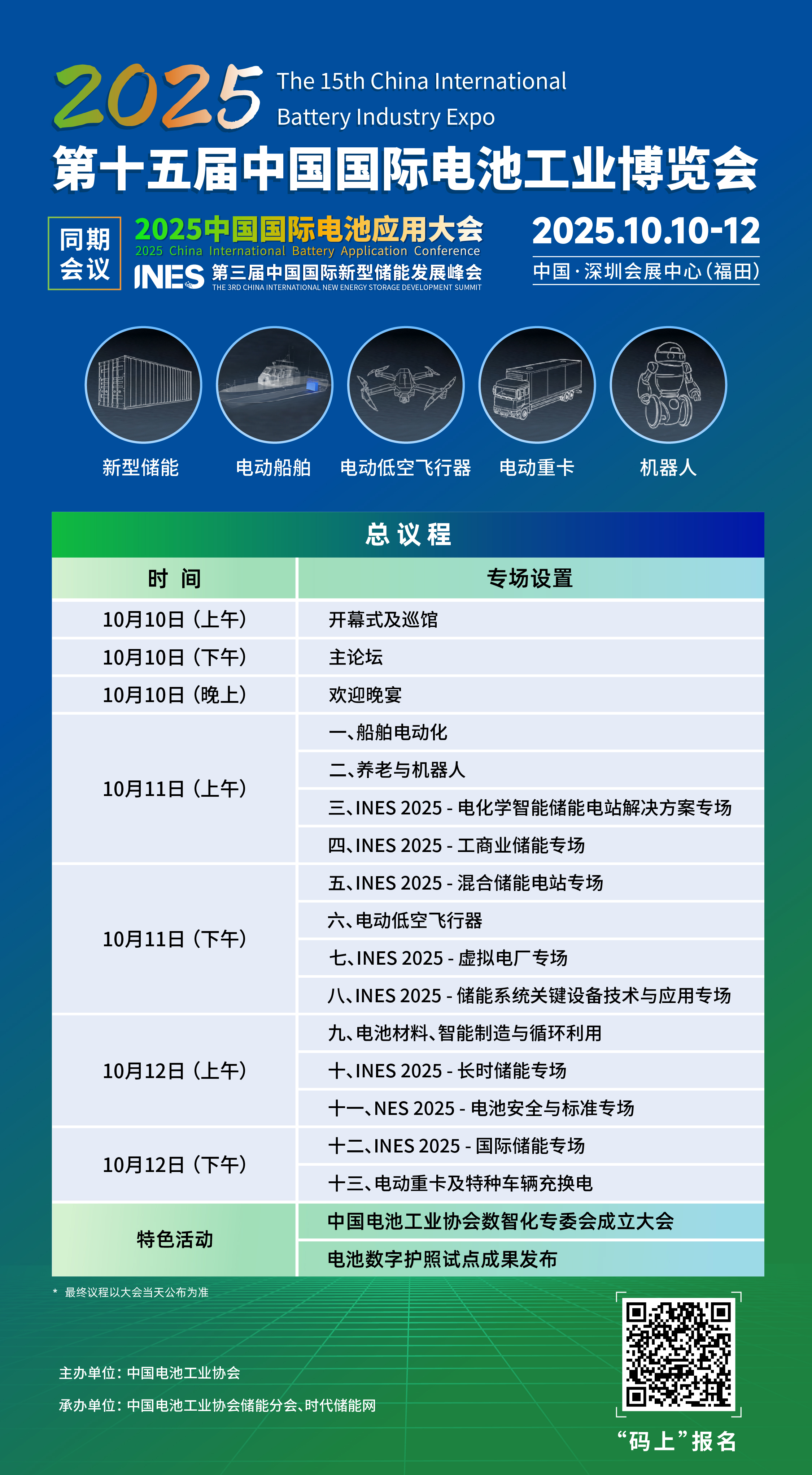 值得一提的是,同期還將舉辦 2025 第三屆中國國際新型儲能發(fā)展峰會,以及船舶、低空經(jīng)濟、機器人、新能源等領域的數(shù)十場主題論壇和新品發(fā)布活動,為電池上下游產(chǎn)業(yè)鏈的合作共贏注入強大動力。