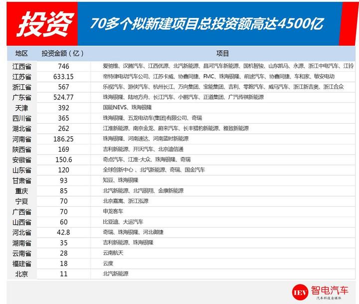 當(dāng)然名單中也有像珠海銀隆這樣的特色企業(yè),擬在天津、江蘇、廣東、四川、河南、甘肅等9個(gè)省市投資近千億搞新能源汽車,產(chǎn)能超過88萬輛。