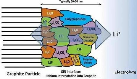 在液態(tài)鋰離子電池首次充放電過程中,電極材料與電解液在固液相界面上發(fā)生反應(yīng),形成一層覆蓋于電極材料表面的鈍化層。形成的鈍化層膜能有效地阻止電解液分子的通過,但Li+ 卻可以經(jīng)過該鈍化層自由地嵌入和脫出,具有固體電解質(zhì)的特征,因此這層鈍化膜被稱為“固體電解質(zhì)界面膜”( solid electrolyte interface) ,簡(jiǎn)稱SEI。SEI膜對(duì)負(fù)極材料會(huì)產(chǎn)生保護(hù)作用,使材料結(jié)構(gòu)不容易崩塌,并且可以增加電極材料的循環(huán)壽命。SEI膜并非一成不變,在充放電過程中會(huì)有少許的變化,主要是部分有機(jī)物會(huì)發(fā)生可逆的變化。電池過度放電后使得SEI膜發(fā)生可逆性破環(huán),保護(hù)負(fù)極材料的SEI破壞后使得負(fù)極材料崩塌,從而形成鼓包現(xiàn)象。