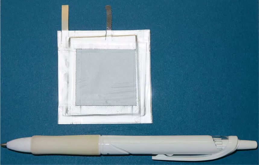 (b)容量為2Ah的試制電池(正面是空氣電極,PTFE網)