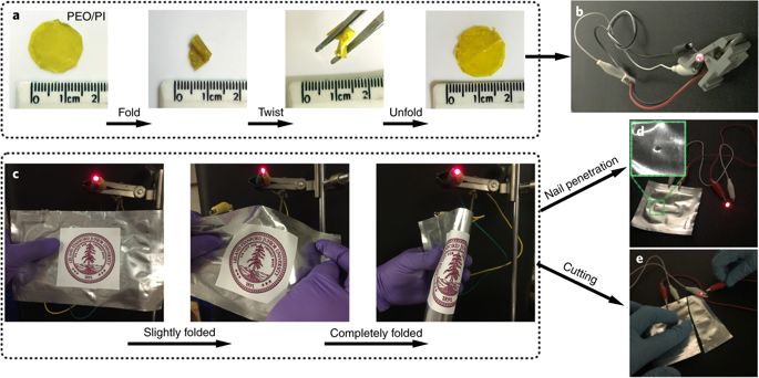 有鑒于此,斯坦福大學崔屹課題組設計了一種全新的不足10μm的超薄、柔性、聚合物復合固體電解質,可以確保全固態鋰離子電池的安全性能。