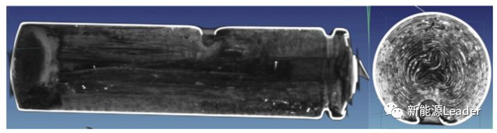 實(shí)驗(yàn)中作者作者共采用三種電池,一款來(lái)自LG的ICR18650 S3電池,容量為2200mAh,一款來(lái)自松下的CGR18650CG電池,容量2200mAh,一款來(lái)自AA移動(dòng)電源公司的軟包電池,容量3000mAh。其中兩款18650電池的CT掃描結(jié)構(gòu)如下所示,從圖中能夠看到兩者之間主要差別體現(xiàn)在松下公司的18650電池中間存在鋼芯,對(duì)電池起到支撐作用。