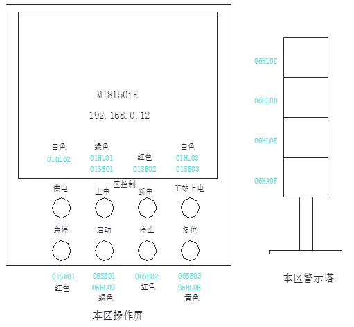 上面一些圖中的按鈕及燈指示的定義并沒有嚴(yán)格的規(guī)定,可以根據(jù)實際應(yīng)用而定義。但需符合2個基本原則:1,保證安全的基礎(chǔ)上,操作要簡單。2,線、區(qū)、站三級的定義要統(tǒng)一。現(xiàn)場只需配置常用的按鈕及指示燈,無論是操作、狀態(tài)顯示、報警,還是參數(shù)設(shè)置,數(shù)據(jù)采集等等,主要在區(qū)HMI中處理。
