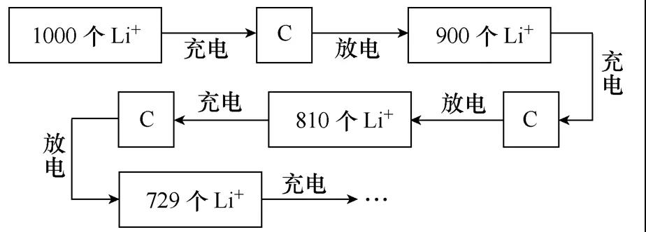 圖1 全電池體系在90%庫(kù)侖效率下可逆鋰離子的消耗