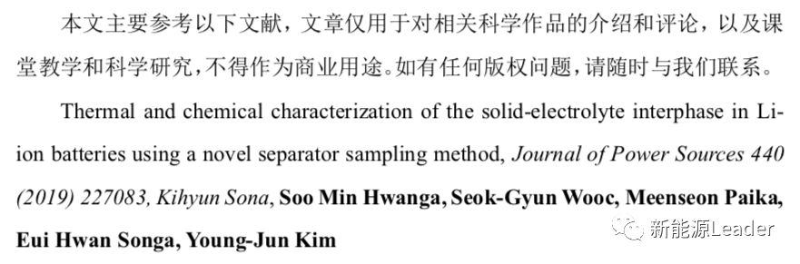 近日,韓國成均館大學的KihyunSon(第一作者)和Eui Hwan Song(通訊作者)、Young-Jun Kim(通訊作者)等人采用隔膜剝離的方法對獨立的SEI膜分析了其熱特性和電化學特性。
