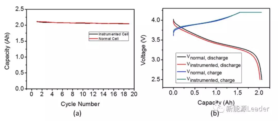 由于作者對18650電池進行了改造,為了避免對電池的電化學性能產生影響,作者對改造后的18650電池和沒有改造的18650電池進行了測試(測試結果如下圖所示),從下圖可以看到經過結構改造的電池在循環性能和放電性能上沒有明顯的差距,這也表明在該試驗中測試得到的結果是真實可靠的。