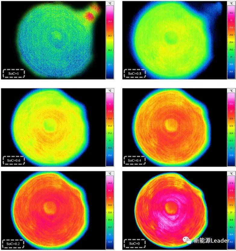 電池在放電過程中內部的溫度梯度是比較常見的現象,但是由于鋰離子電池的密封結構,我們僅能夠觀測電池外表的溫度,這不利于鋰離子電池的熱設計,Xiao Du采用的方法讓我們能夠通過紅外相機直接看到鋰離子電池內部的溫度分布,對于指導鋰離子電池的設計生產和檢驗鋰離子電池產熱模型具有重要的意義。