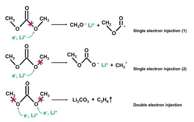 EC溶劑與Li+在高溫下的反應如下式所示,產生C2H4和Li2CO3等產物。