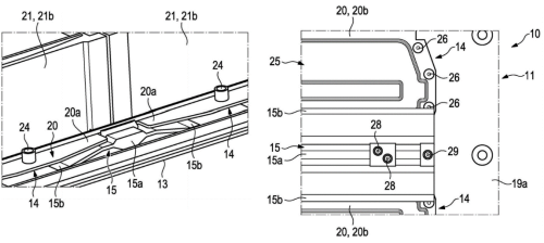 電池系統有點像是PPE平臺的電池方案設計,我們從這個專利里面可以解讀出PPE在之前的E-tron跟MEB平臺設計的差異性——這套電池設計的高度是比較矮的,是適用于轎車的面向高端化的設計構思。