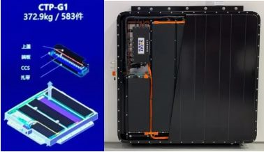 現實來說,這個有點像之前蜂巢展示的一個長條的CTP方案,如下圖所示,這兩個在結構上比較相似。為了保證足夠的壓力,這里中間還是放置了隔板,可以兼容原有的軟包和方殼電芯的方案。也就是說,在這里兩種不同的電芯放進去以后通過分隔板之后形成一體化,中間可以做電氣分割,也可以直接進行串聯,然后像下圖蜂巢那樣做的長模組直接進行連接點的串聯,以保證電氣連接的簡潔性。