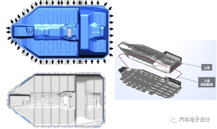 和之前豐田電池設計不同的地方,這個BEV電池系統需要符合IP67的要求,所以如下所示上蓋與下箱體的密封通過密封膠條和49個螺栓固定。