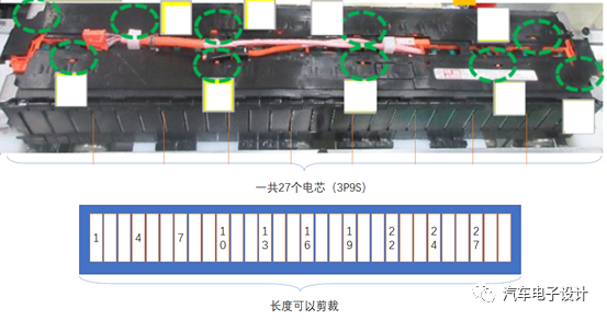 3)豐田設計的模組的電氣連接:和HEV、PHV一樣,豐田還是在這么長的模組上使用了一條很長的母線可拆解的連接帶,目的有幾個:
