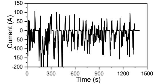 首先作者測(cè)試了電池的容量,具體步驟為采用CC-CV制度對(duì)電池進(jìn)行充電,然后以1C倍率下進(jìn)行放電,以測(cè)量電池的容量,重復(fù)該過(guò)程3次,以得到平均電池容量。然后作者分別在5℃、15℃、25℃和45℃測(cè)試了電池在10%-90%SoC范圍內(nèi),電池的開(kāi)路電壓和歐姆阻抗。然后作者采用FUDS測(cè)試(如下圖所示)驗(yàn)證了模型的準(zhǔn)確性。