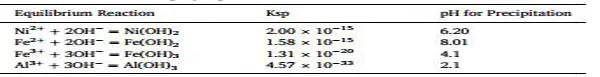 表格1.Ni2+、Fe2+、Fe3+和Al3+發生沉淀時的PH值及對應的Ksp