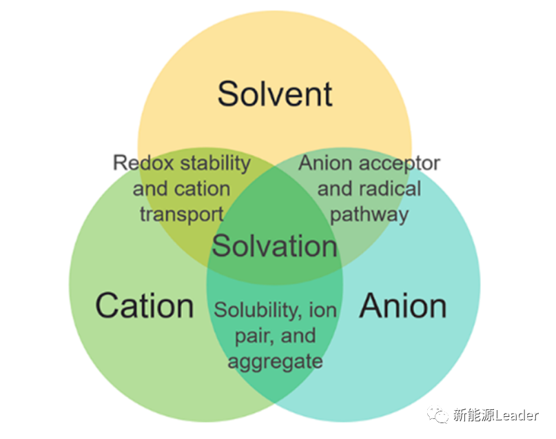 在電解液中陽離子總是會與溶劑分子形成溶劑化結構,而這種溶劑化結構對電解液的穩定性和陽離子溶解、傳輸過程都會產生顯著的影響。前線軌道理論和氧化還原電勢常被用來解釋分子結構的氧化還原穩定性,但是兩者之間存在著顯著的區別,其中前者主要是來自于獨立分子的電子結構特性,而后者則主要來自于吉布斯自由能理論。