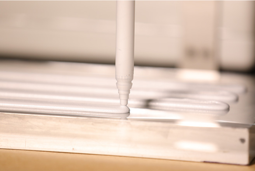 電池固定在冷卻板上,不僅需要緊固件,還需要一種名為間隙填充物的導熱聚合材料。在此類應用中,由于間隙填料在固化前能夠適應表面粗糙度,所以其表現優于熱墊,熱阻抗較低。間隙填料能夠很好地附著在表面上,在正常運行過程中提供機械支撐,并滿足原始設備制造商嚴格的標準。但是,如果需要拆卸電池,其高粘著力也會帶來挑戰。