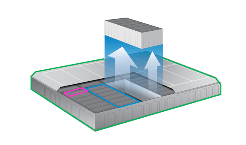 在常規電池組設計中(如圖1所示),電池模塊緊密地挨在一起,以最大限度地提升空間和能量密度。但是,殼體內的電池排列過于緊湊,不容易拆卸,例如從邊緣和垂直方向剝離電池。