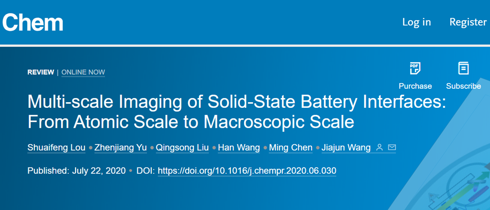 Shuaifeng Lou, Zhenjiang Yu, Qingsong Liu, Han Wang, Ming Chen, Jiajun Wang, Multi-scale Imaging of Solid-State Battery Interfaces: From Atomic Scale to Macroscopic Scale, Chem, 2020, DOI:1016/j.chempr.2020.06.030
