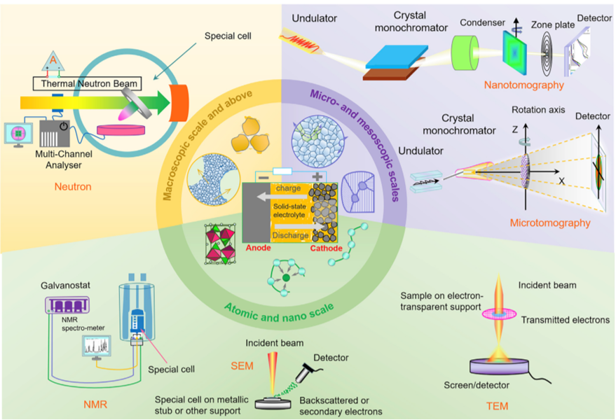 圖1. 先進成像表征技術在固態電池中從原子尺度到宏觀的應用