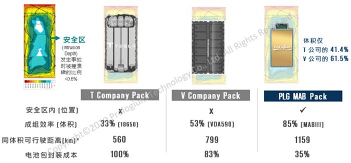 此前出于安全性的考量,輝能的MAB(多軸向雙極電池電池包)依然保留了大模組(類似于CTP),“之前還做不到無模組,但在導入ASM后,就能去掉相應的安全部件,從而讓封裝體積效率大于85%,這意味著電池包85%體積的部件都是帶電原件(根據輝能提供數據,T公司這一數值約為33%)。”