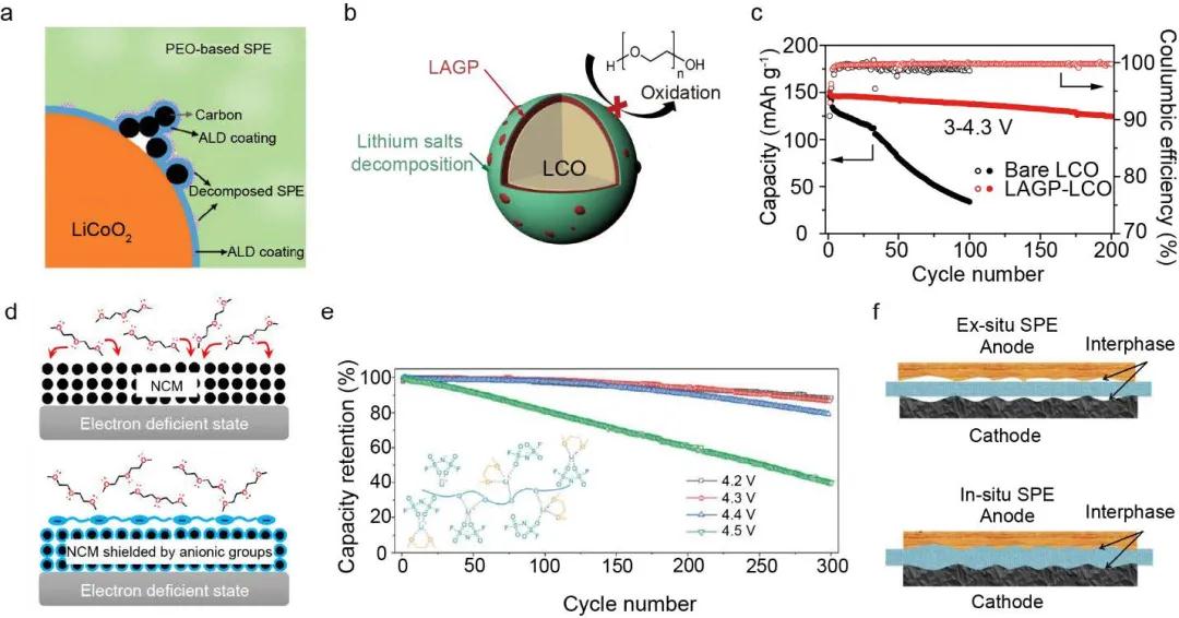 如上所述,該界面的不穩定性主要由聚合物相的氧化引起。因此,抑制聚合物氧化將是解決這一挑戰的有效途徑,主要包括三個方面:1)在正極表面惰性涂層;2)調整電解質電子結構;3)減少界面間機械分層。