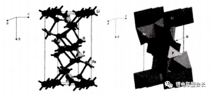 1997年JohnB.Goodenough報道橄欖石結構的磷酸鐵鋰也可作為鋰離子電池正極材料,LiFePO4的理論容量為170mAh/g。橄欖石結構的LiFePO4屬于正交晶系,其結構如圖5所示。