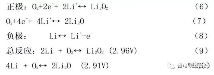 鋰空氣電池按使用的電解液的狀態不同,主要可分為水體系、有機體系、水-有機混合體系以及全固態鋰空氣電池。在有機體系鋰空氣電池工作時,原料O2通過多孔空氣電極進入電池內部,在電極表面被催化成O2-或O22-,接著與電解質中的Li+結合,生成過氧化鋰或氧化鋰,產物沉積在空氣電極表面。當空氣電極中的所有空氣孔道都被產物堵塞后電池放電終止。其電極反應如下所示: