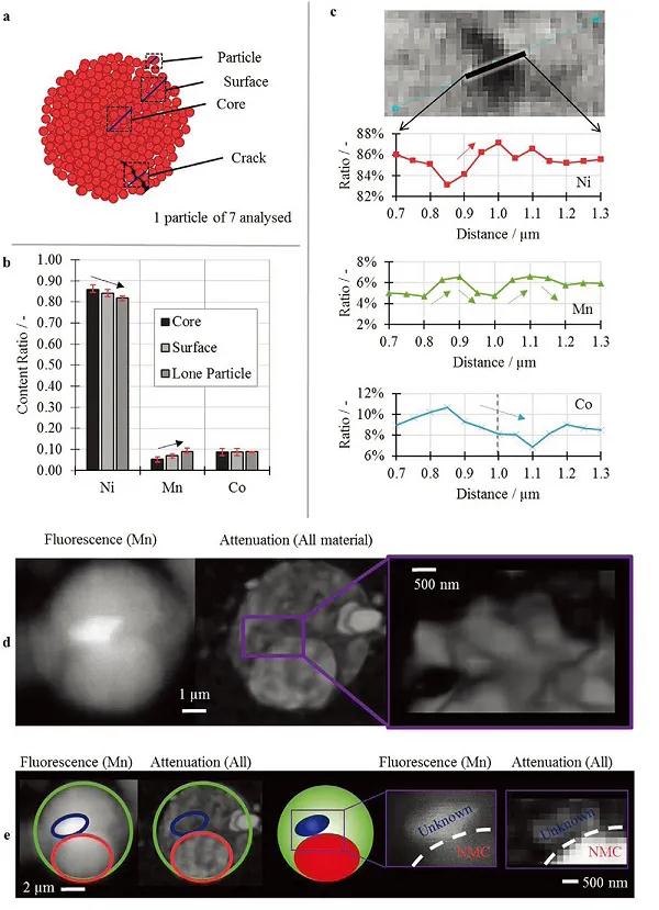 圖5. 次級NMC811顆粒中不均勻Mn含量的檢測