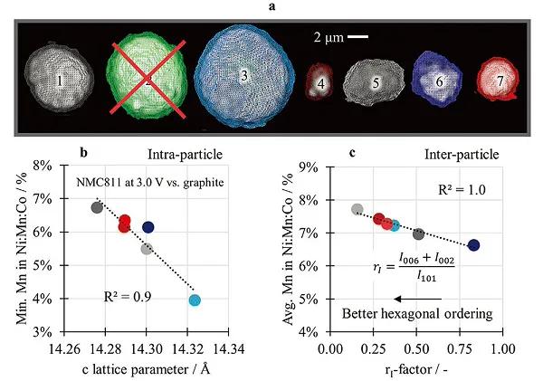 圖1.定量分析新制NMC811電極材料中的顆粒缺陷數量