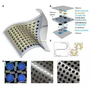 (韓國KAIST制備的典型疊層結構的柔性全固態電池)