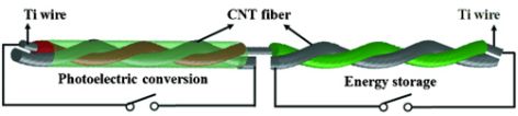 (太陽能電池和超級電容器一體集成纖維狀器件示意圖)