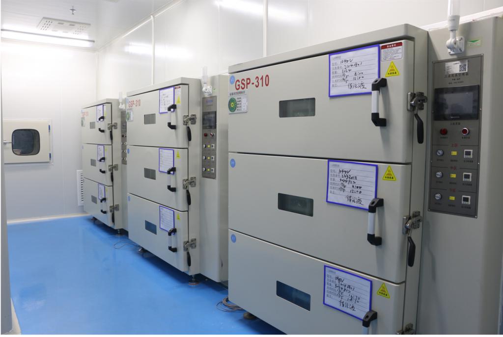 通過在真空負壓狀態下,加溫至水對應的沸點以上且對其他固體材料沒有任何影響,去除電芯內極微量的水分,使電池內部水分控制在 120PPM 以內,提升電池的性能。